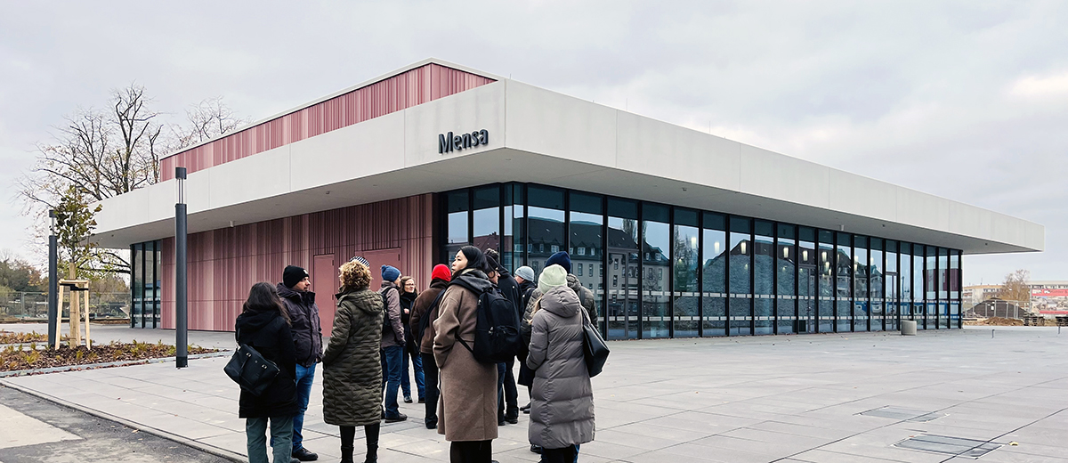 Derzeit entstehen dort drei Projekte von uns: der Neubau der Küche in der JVA Bautzen, der Neubau der Raumschiessanlage für die Hochschule der Sächsischen Polizei in Bautzen, sowie die Erweiterung und Sanierung der Oberschule in Baruth. Natürlich nutzten wir die Gelegenheit zu einer Mittagspause in „unserer“ neuen Mensa auf dem Campus der Polizeihochschule.
